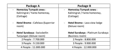 - At 12pm check out, go to Cemorolawang village, check in hotel, free program