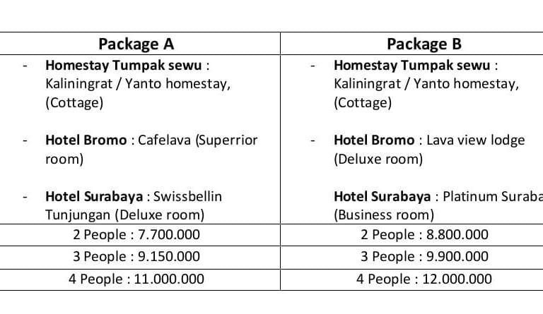 Surabaya Tumpak Sewu Bromo Surabaya 4D3N (Private tour)